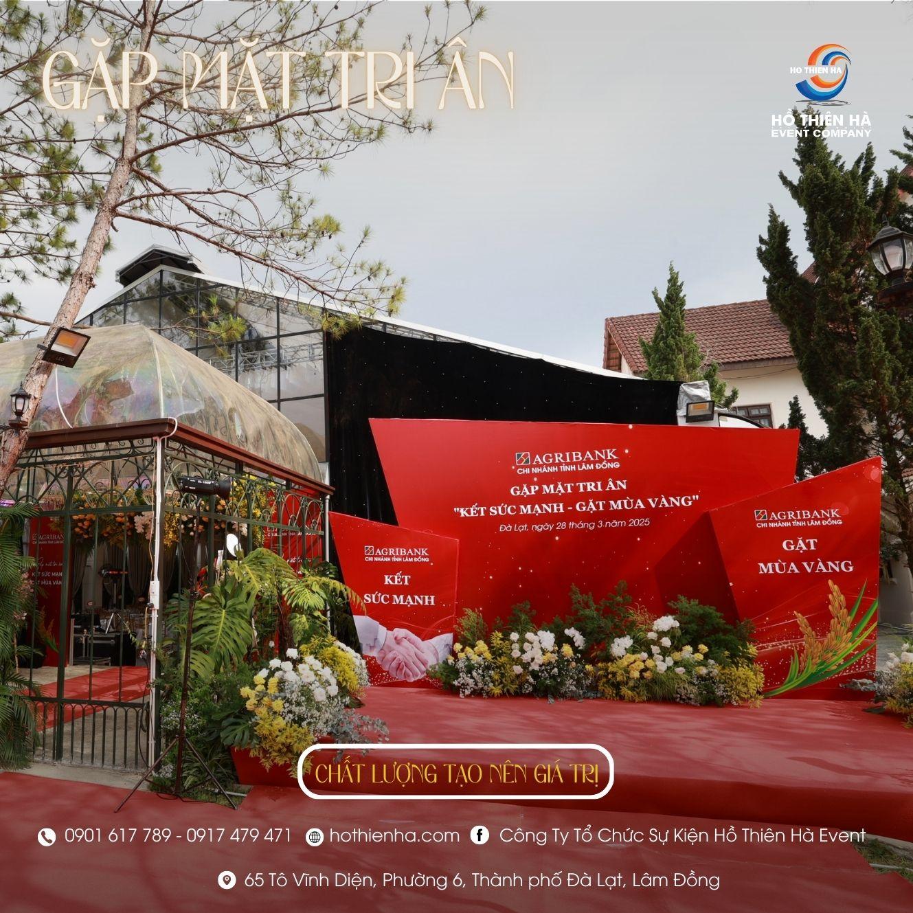 Hồ Thiên Hà Event rất vinh hạnh khi được Agribank Lâm Đồng tin tưởng lựa chọn làm đơn vị tổ chức cho buổi lễ tri ân này. Thấu hiểu được ý nghĩa của buổi lễ, cũng như tâm huyết của Agribank Lâm Đồng dành cho buổi tri ân lần này. Hồ Thiên Hà Event đã dốc hết tâm và sức để mang lại một buổi lễ thành công và hoàn hảo nhất. Chúng tôi luôn đặt sự chuyên nghiệp và trách nhiệm lên hàng đầu để mang lại cho các đối tác một trải nghiệm hoàn hảo nhất.