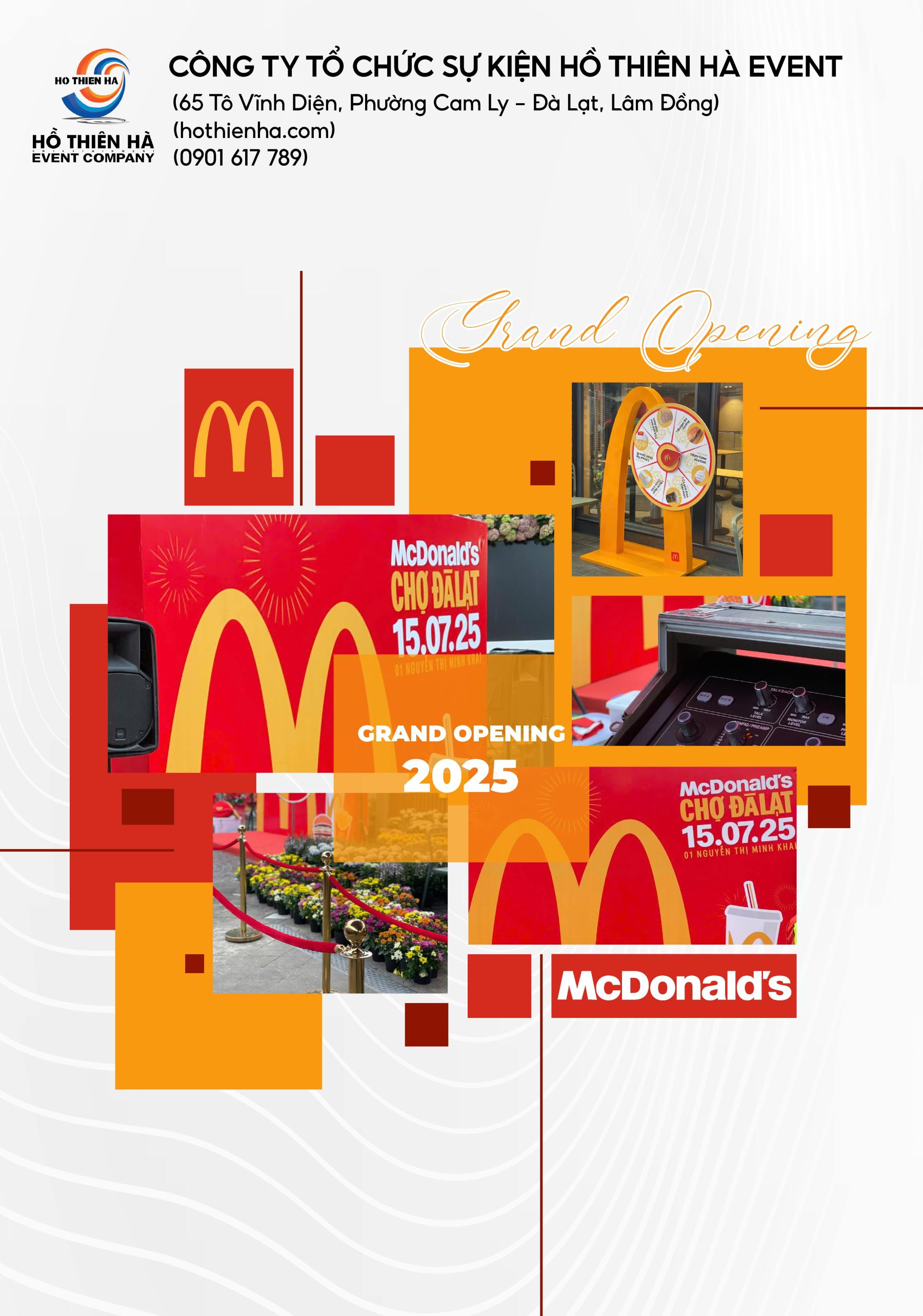 Hồ Thiên Hà Event rất vinh hạnh khi được đồng hành cùng McDonald's. Chúc McDonald's Chợ Đà Lạt khai trương hồng phát. Cảm ơn Quý khách hàng đã luôn tin tưởng và sử dụng dịch vụ của chúng tôi.