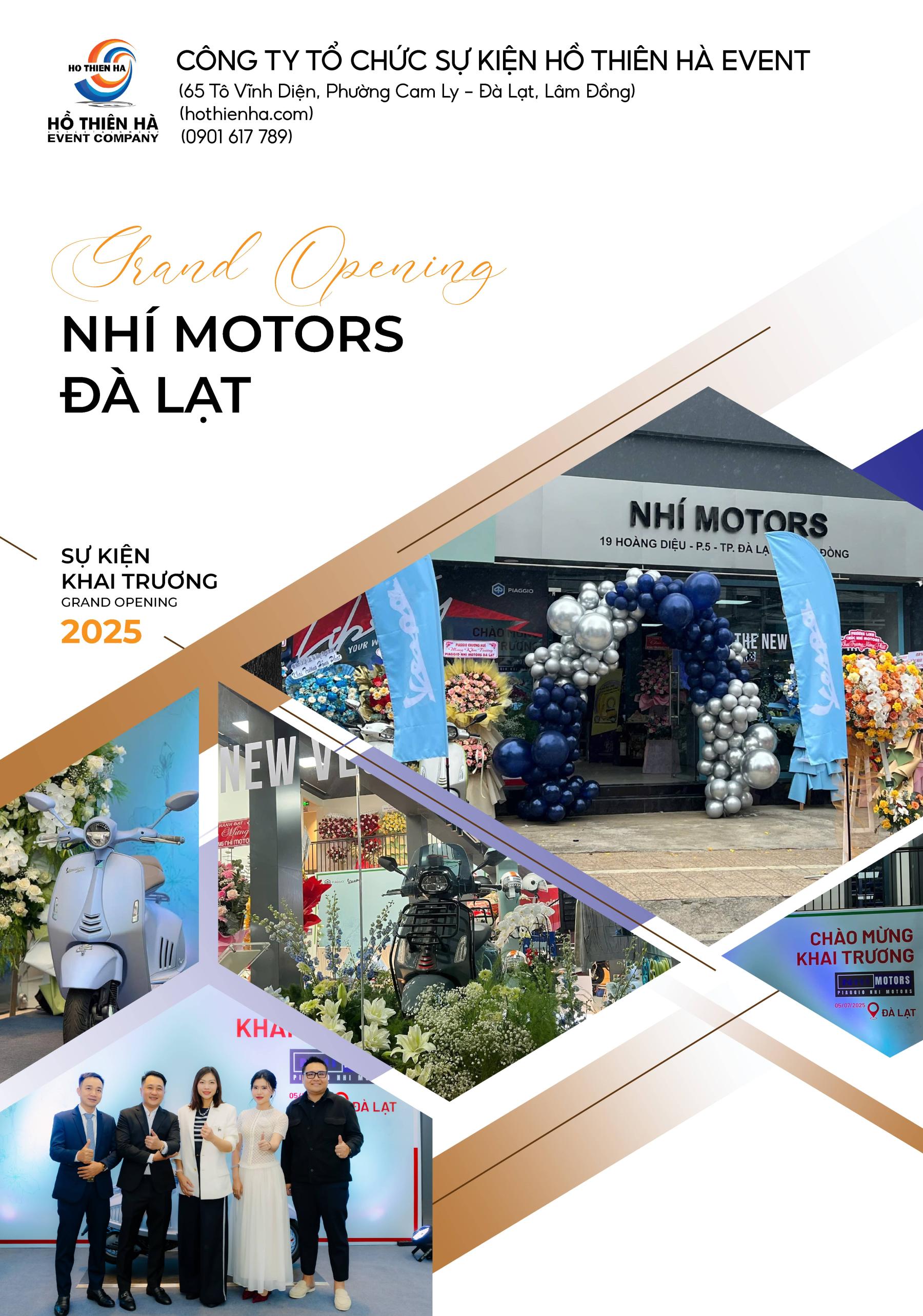 Hồ Thiên Hà Event rất vinh hạnh khi được đồng hành cùng Nhí Motors. Chúc Nhí Motors khai trương hồng phát. Cảm ơn Quý khách hàng đã luôn tin tưởng và sử dụng dịch vụ của chúng tôi.